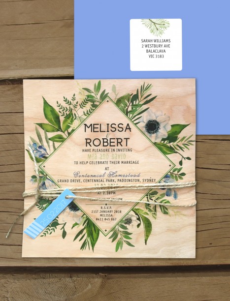 Brand new to Lilykiss, printing in wood is our latest beautiful product we are so pleased to bring you! These rustic Evergreen foliage wedding invitations have a unique factor unlike any others - as far as getting 'wow' comments, paper will find it hard to compete with the qualities of this thick, yet elegant wooden technique. These invites are so different, the effect of the gorgeous grains poking through is just divine, we are in love with them! They are truly unique. Seen here in our beautiful tree design, it has such a friendly and romantic feel with it's sprawling leaves. This stylish design is the perfect combo of country rustic and chic. Such a striking invitation. And.... the best news is that this wedding invitation is so eco-friendly! We are so happy to tell you that the amazing printers we use for these guys are truly one sustainable little set up. They tell us that their timbers are naturally better for the environment than paper. They use less waste, chemicals and emissions - and the best part?! Even though your invitation order will only be using a small fraction of the tree - they replant a full tree for you! Thats a full tree, we think they are amazing and so happy to be working with them. We just love that not only do these invitations look SO, SO amazing and unusual, but by ordering them, you get a tree planted, making this world a little greener than before. There is so much to love about our printed on wood invites. Seen here in birch and cherry wood - the lighter wood suits the pastel better - producing a gorgeous effect with the wood grain poking through the pastels, producing a stunning tonal effect. To feel the grain, and the textures, these wedding invitations need to be held to be fully appreciated just how magical they are. We highly suggest ordering a sample for $5. We can match the envelopes with a matching kraft, earthy brown envelope as well if you prefer. These designs are brand new to lilykiss - so rsvp cards, placecards and wishing wells and all matching items do all exist in this design - please get in touch if you'd like a pic, up online soon! We hope you love these darling tree designs as much as we do :) Claire and The Lilykiss Team x *Please note, the cherry wood is the darker and most grainy - so pretty, but given the nature of the material, being wood! The colour might vary slightly for your actual order from the sample you receive. It will still of course be cherry wood, but we can't guarantee the colour of each tree, they will be similar but some have a little more pink undertones and some a little more yellow - however they are all just divine. Part of the beauty of woking with a natural material. Also note that the wood comes in 2 thicknesses a thicker is available on request. As well we are busily getting up matching rsvp cards, placecards, save the date cards and menus and all other matching stationery items in this wedding invitation design! They look amazing as a set please ask us for images if you are interested as we just haven't had time to get them up as yet! Soon!